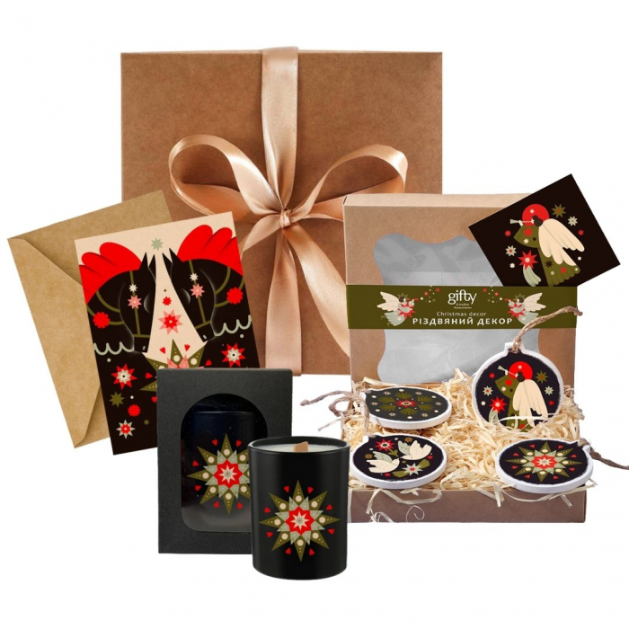 Даруй зимову магію, яка вже зібрана у коробку! У ній — символ 2026 року на листівці, дерев’яні ялинкові прикраси та ароматична соєва свічка, що огортає простір святковим світлом і затишним ароматом. Такий набір точно створить атмосферу свята, домашнього тепла й маленьких зимових див.