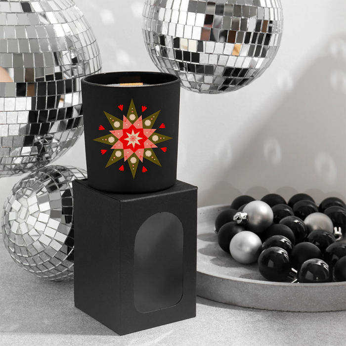 | Ароматична свічка | Ароматична свічка Різдвяна зоря, 250 мл, 50-60 годин горіння, аромат з нотами шампанського, нектарина, винограду та мускусу, 100% соєвий віск (екологічний, не виділяє шкідливих речовин) |